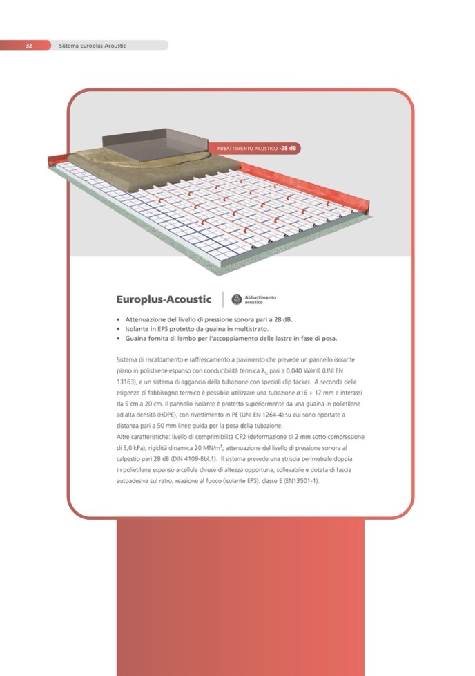 calpestio pari 28 dB (DIN 4109-Bbl.1). Il sistema prevede una striscia perimetrale doppia