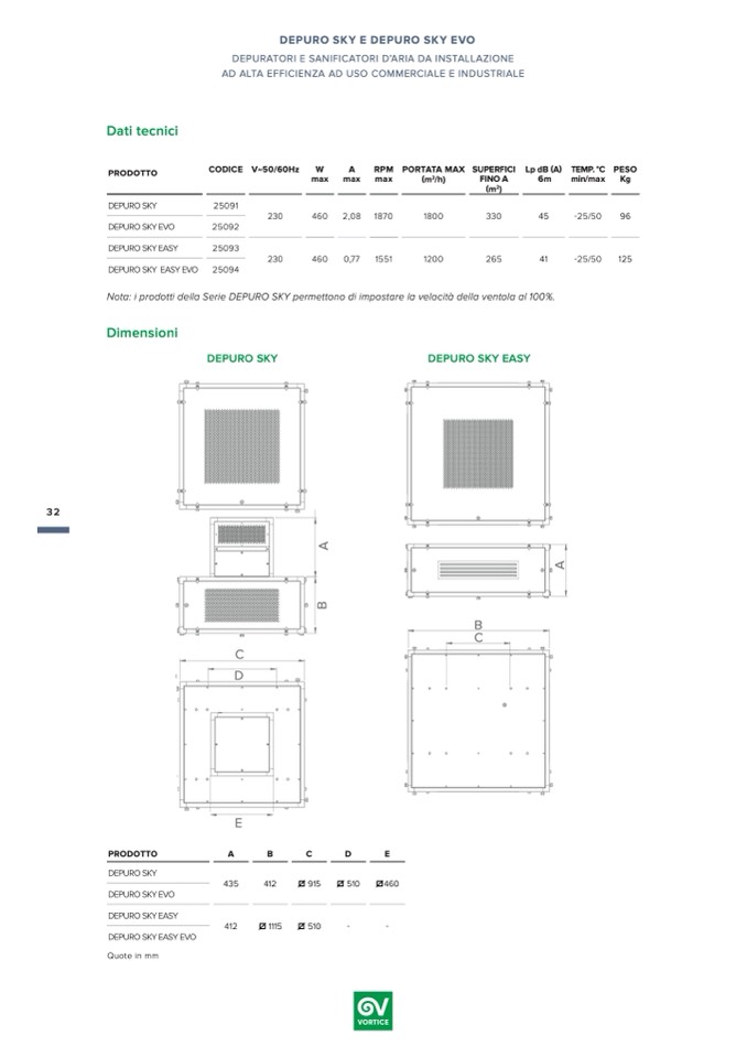 Nota: i prodotti della Serie DEPURO SKY permettono di impostare la velocità della ventola al 100%.