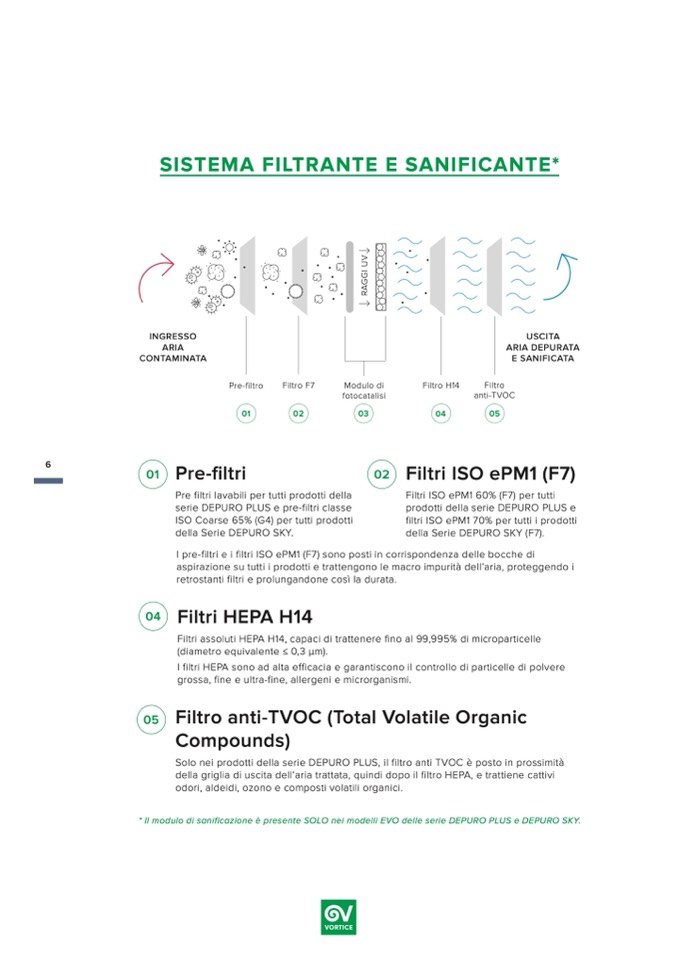 Solo nei prodotti della serie DEPURO PLUS, il filtro anti TVOC è posto in prossimità