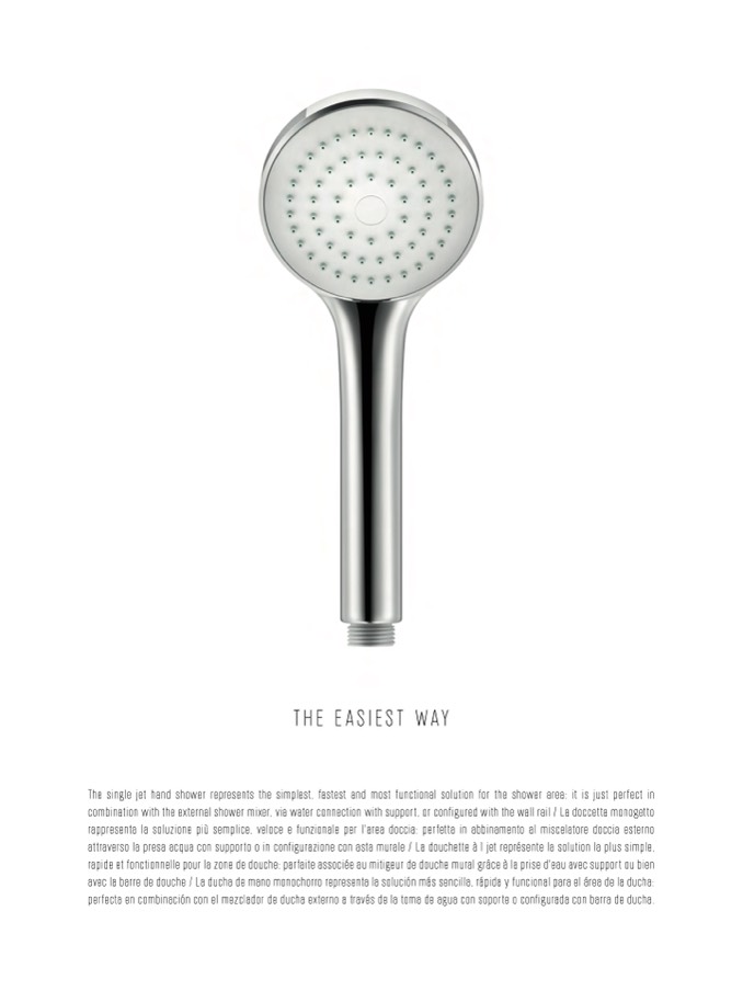 The single jet hand shower represents the simplest, fastest and most functional solution for the shower area: it is just perfect in