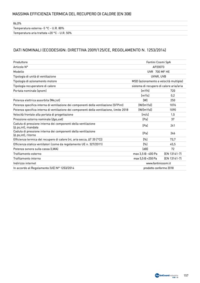 Efficienza statica ventilatori (come da regolamento UE n. 327/2011)