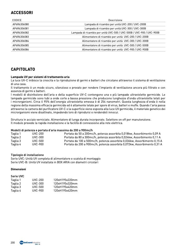 Modelli di potenza e portata d’aria massima da 200 a 900mc/h