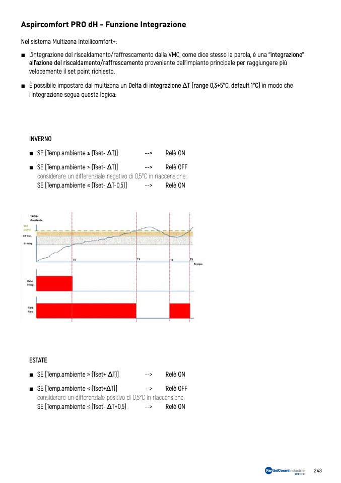 ■ È possibile impostare dal multizona un Delta di integrazione ΔT (range 0,3÷5°C, default 1°C) in modo che