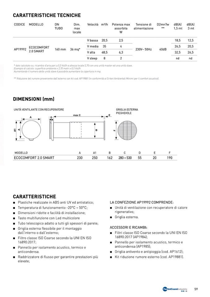 * dato calcolato su: ricambio d'aria pari a 0,5 Vol/h e altezza locale 2,70 con una unità master ed una unità slave.