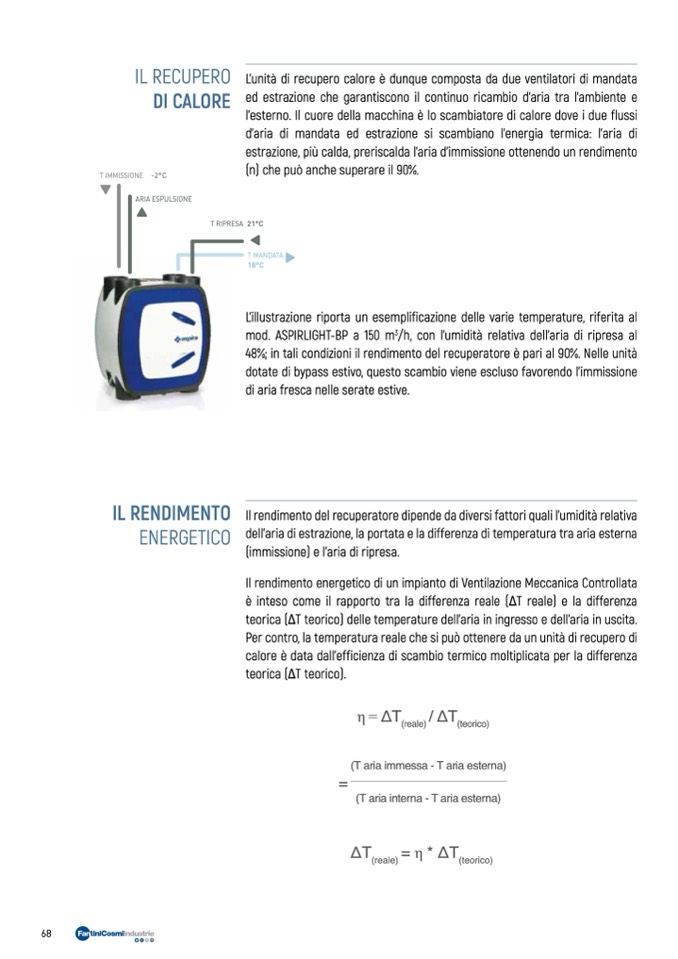 48%; in tali condizioni il rendimento del recuperatore è pari al 90%. Nelle unità