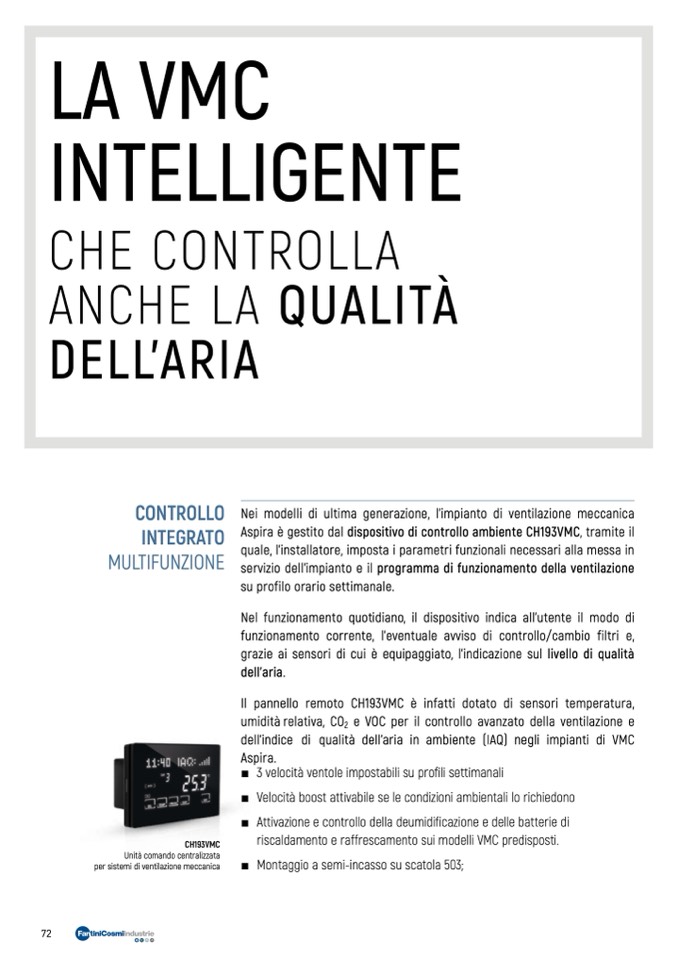 Aspira è gestito dal dispositivo di controllo ambiente CH193VMC, tramite il