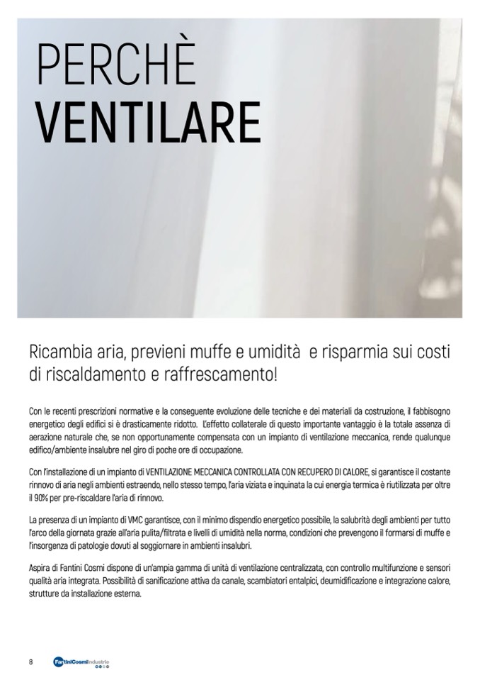 rinnovo di aria negli ambienti estraendo, nello stesso tempo, l’aria viziata e inquinata la cui energia termica è riutilizzata per oltre