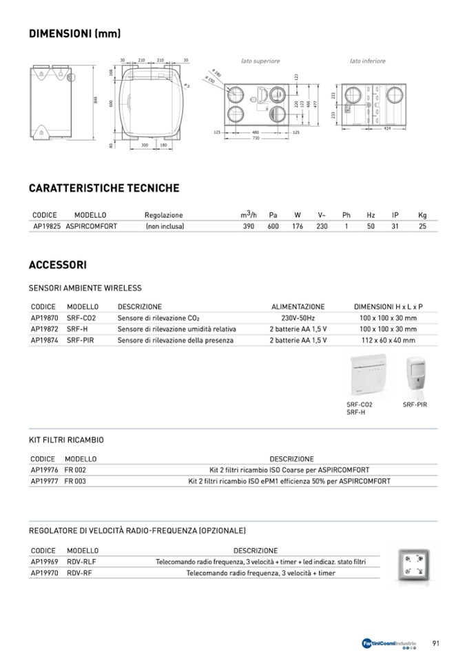 Telecomando radio frequenza, 3 velocità + timer + led indicaz. stato filtri