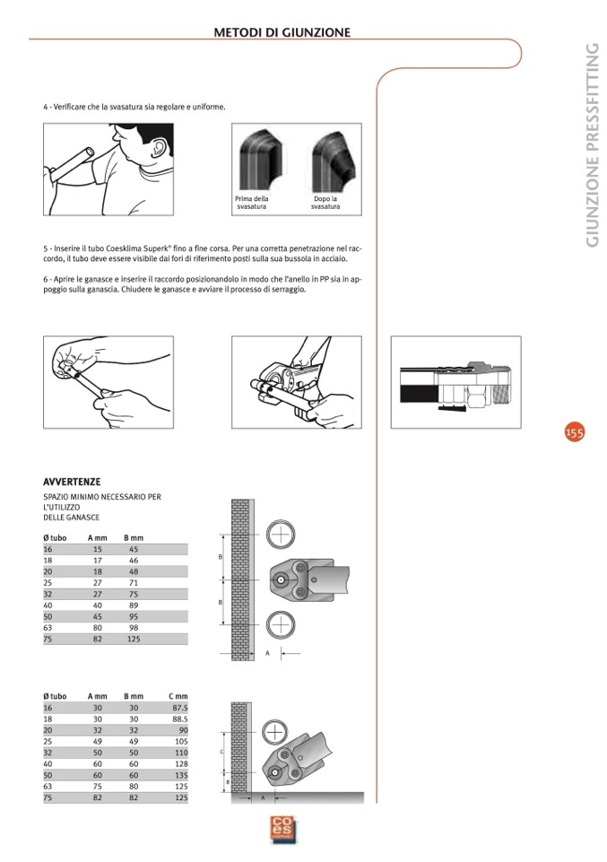 - Aprire le ganasce e inserire il raccordo posizionandolo in modo che l’anello in PP sia in ap-