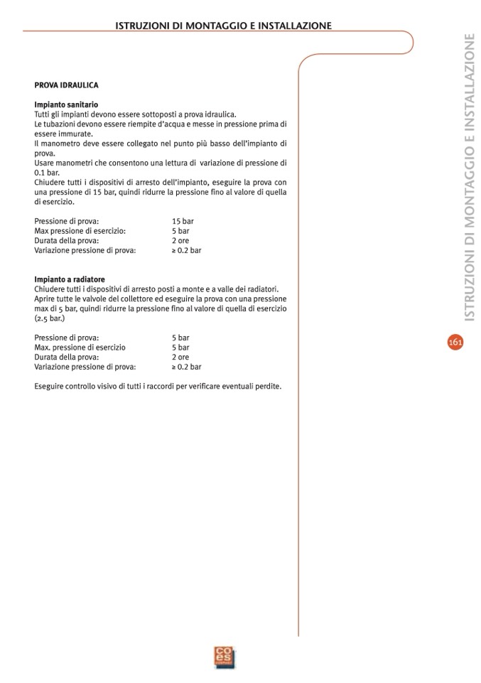 Tutti gli impianti devono essere sottoposti a prova idraulica.