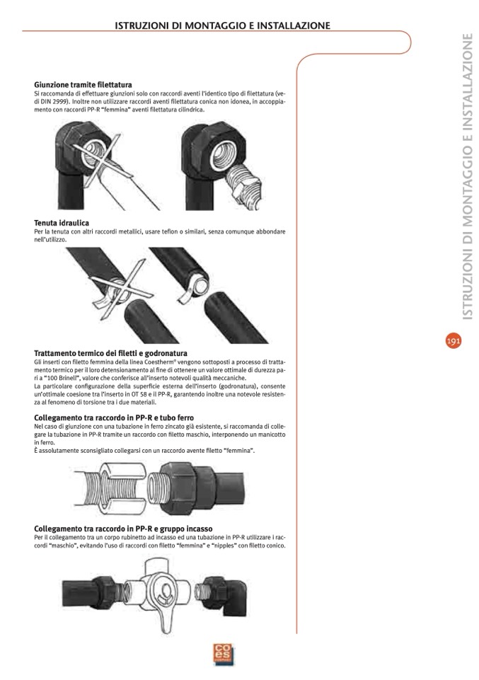 cordi “maschio”, evitando l’uso di raccordi con filetto “femmina” e “nipples” con filetto conico.