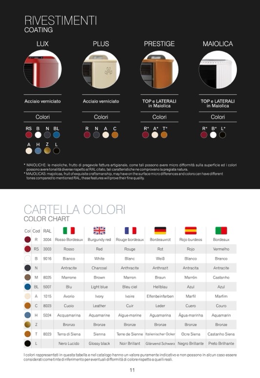 I colori rappresentati in questa tabella e nel catalogo hanno un valore puramente indicativo e non possono in alcun caso essere