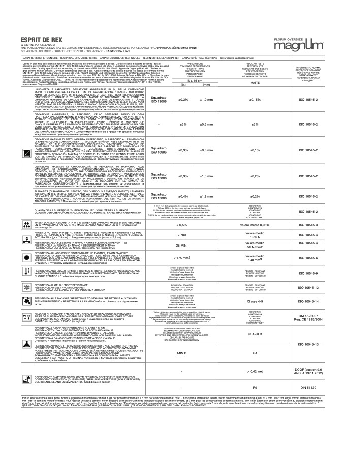 controllo previsti dalla norma EN 14411- ISO 13006 Appendice G gruppo BIa UGL. / Unglazed porcelain stoneware slabs. Dry-pressed