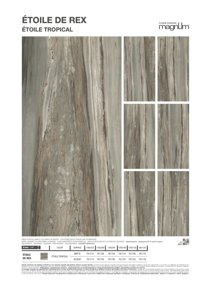 Le immagini riportate non rappresentano necessariamente il numero di grafiche del prodotto. Il numero di grafiche è variabile in funzione del formato e del colore di riferimento. / Images do not necessarily represent the number of patterns in the product’s range.