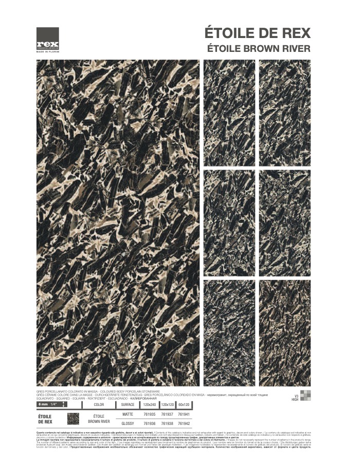 Le immagini riportate non rappresentano necessariamente il numero di grafiche del prodotto. Il numero di grafiche è variabile in funzione del formato e del colore di riferimento. / Images do not necessarily represent the number of patterns in the product’s range.