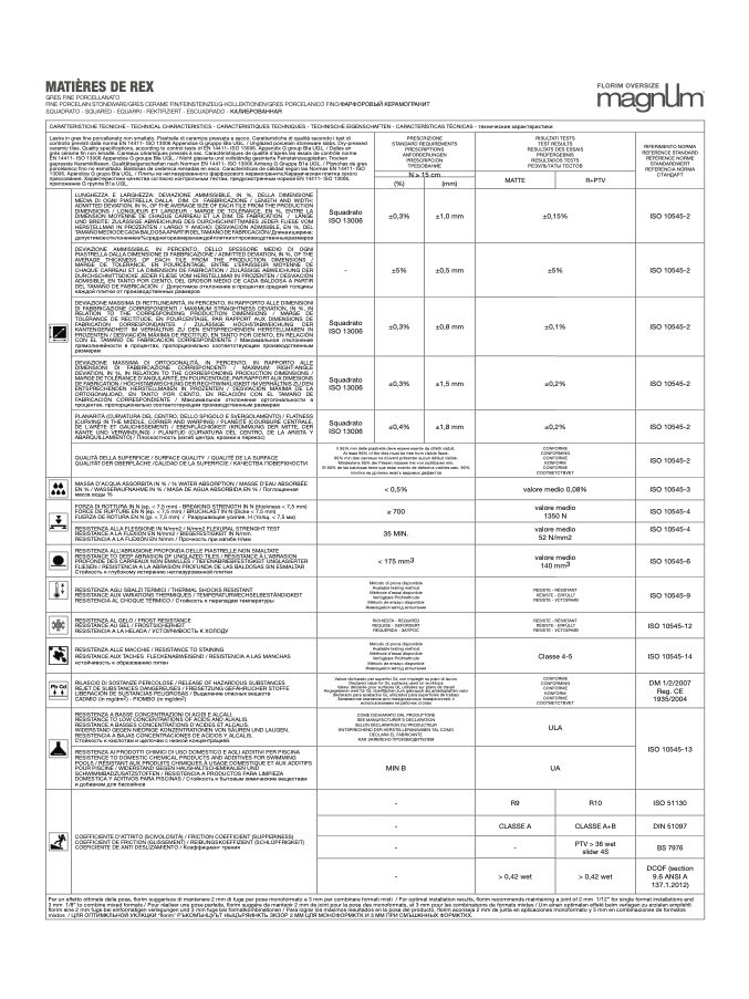 controllo previsti dalla norma EN 14411- ISO 13006 Appendice G gruppo BIa UGL. / Unglazed porcelain stoneware slabs. Dry-pressed