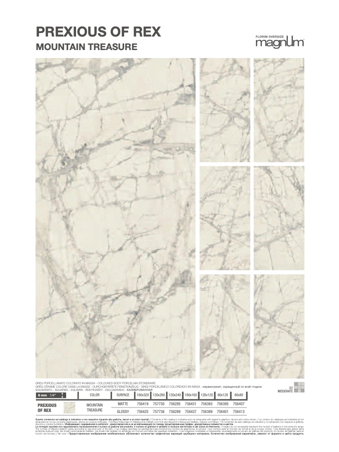 Le immagini riportate non rappresentano necessariamente il numero di grafiche del prodotto. Il numero di grafiche è variabile in funzione del formato e del colore di riferimento. / Images do not necessarily represent the number of patterns in the product’s range.