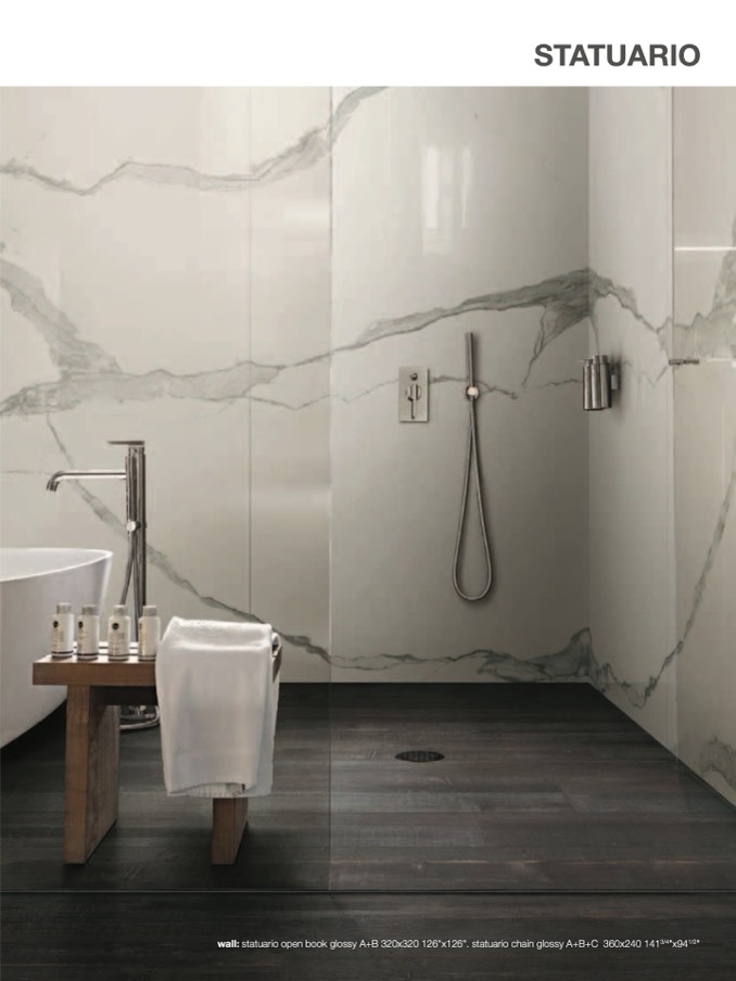 wall: statuario open book glossy A+B 320x320 126"x126". statuario chain glossy A+B+C 360x240 141