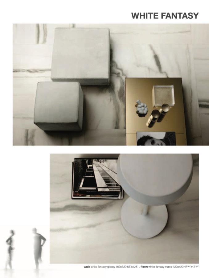 wall: white fantasy glossy 160x320 63"x126" . floor: white fantasy matte 120x120 47