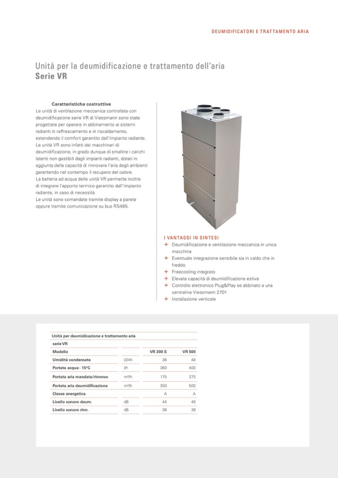 deumidificazione serie VR di Viessmann sono state