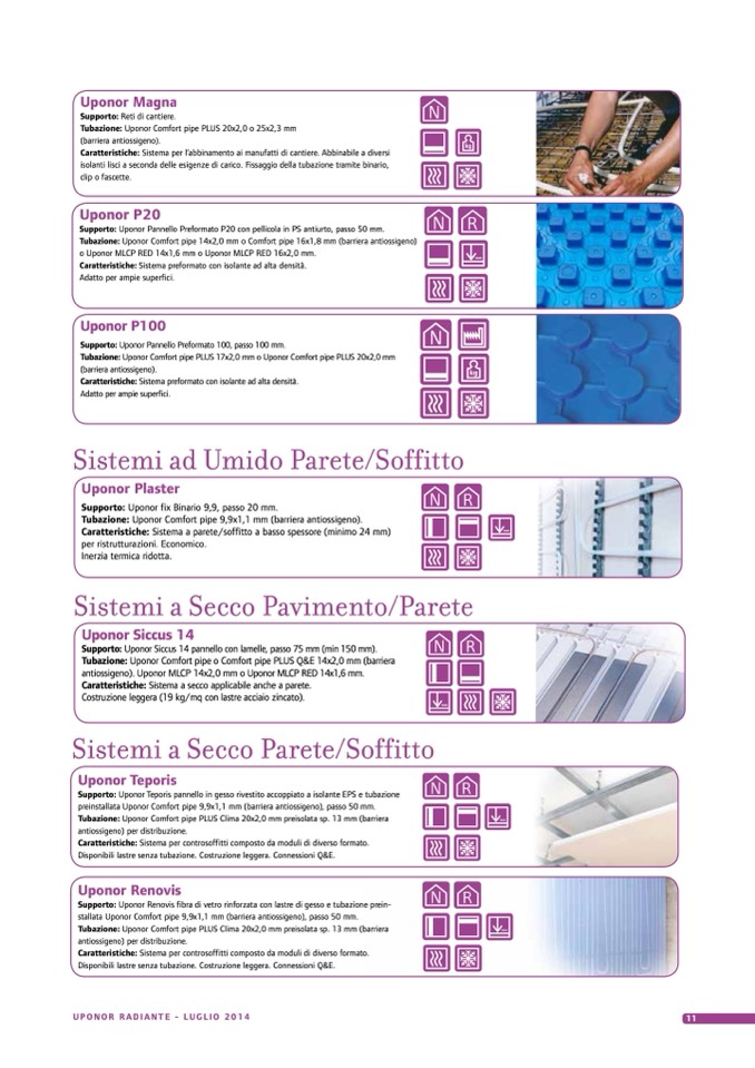 preinstallata Uponor Comfort pipe 9,9x1,1 mm (barriera antiossigeno), passo 50 mm.