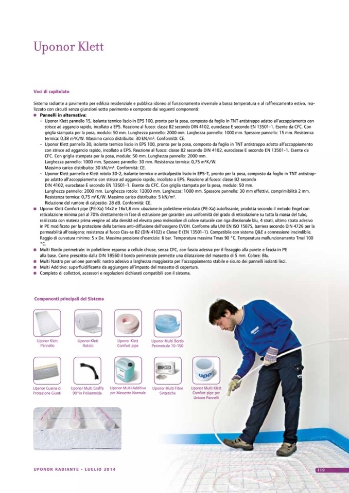 - UponorKlettpannello15,isolantetermicoliscioinEPS100,prontoperlaposa,compostodafoglioinTNTantistrappoadattoall’accoppiamentocon