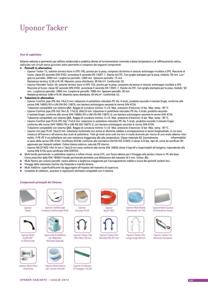 - Uponor Tacker 15, isolante termico liscio in EPS 100, pronto per la posa, composto da lamina in tessuto antistrappo incollata a EPS. Reazione al