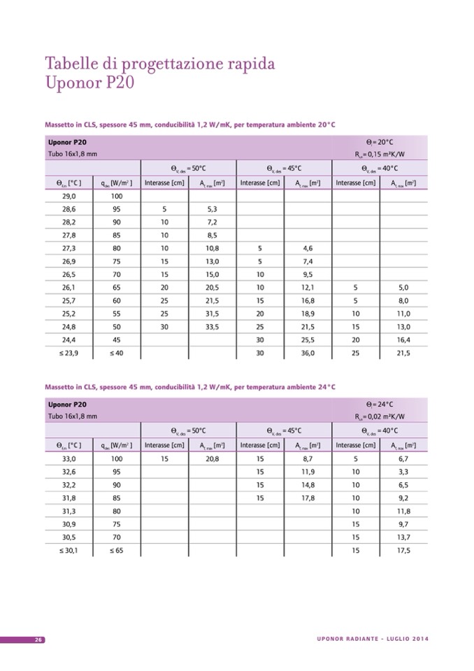 Massetto in CLS, spessore 45 mm, conducibilità 1,2 W/mK, per temperatura ambiente 24°C