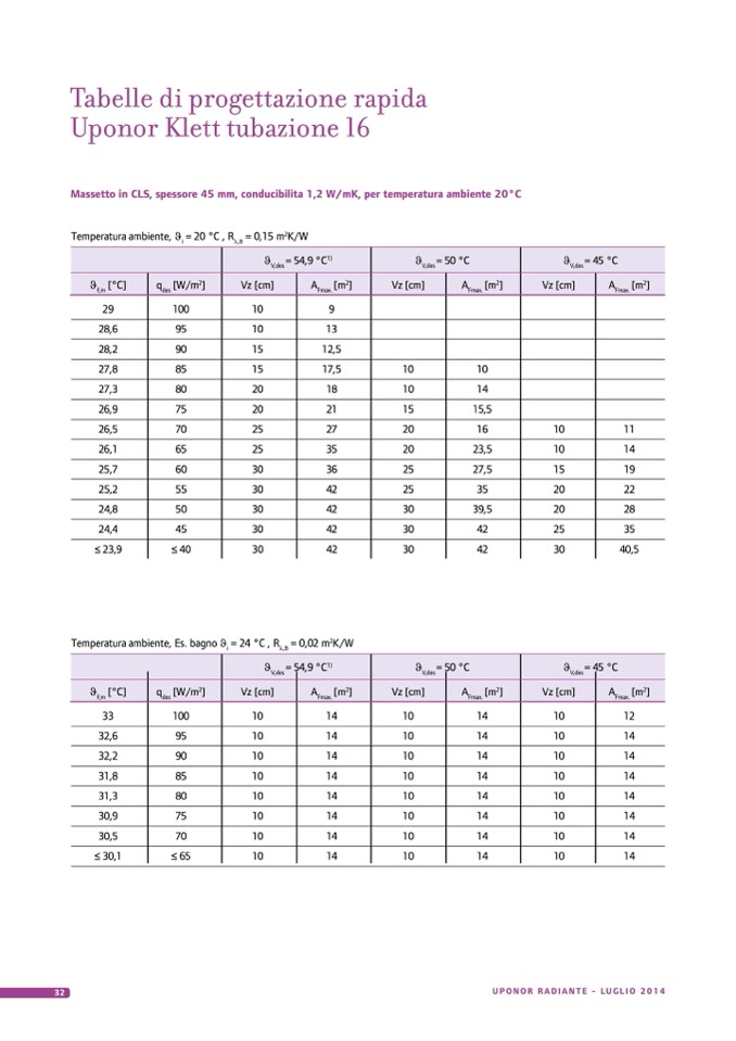 Massetto in CLS, spessore 45 mm, conducibilita 1,2 W/mK, per temperatura ambiente 20°C
