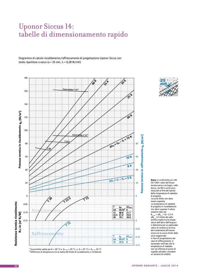 Diagramma di calcolo riscaldamento/raffrescamento di progettazione Uponor Siccus con