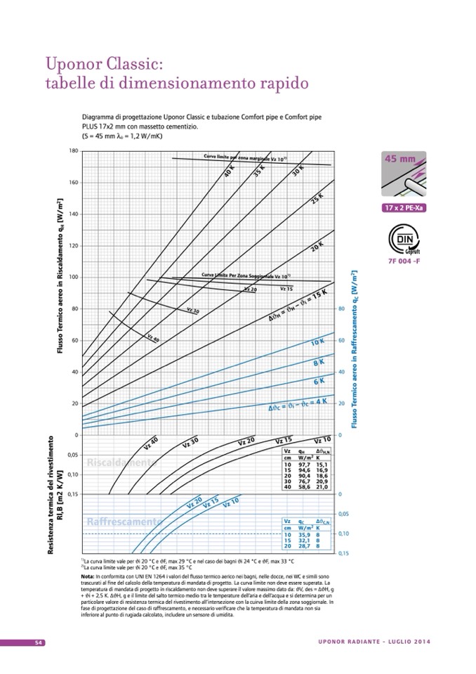 Diagramma di progettazione Uponor Classic e tubazione Comfort pipe e Comfort pipe