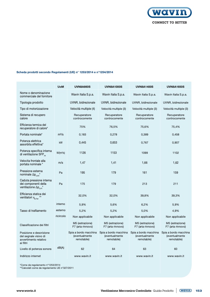 Scheda prodotti secondo Regolamenti (UE) n° 1253/2014 e n°1254/2014