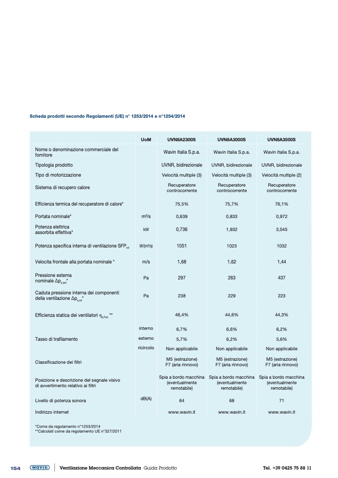 Scheda prodotti secondo Regolamenti (UE) n° 1253/2014 e n°1254/2014