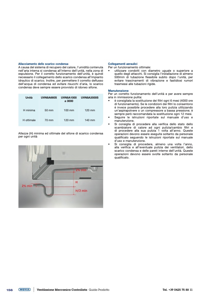 Altezze (H) minima ed ottimale del sifone di scarico condensa