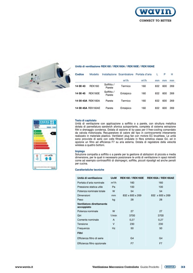 Unità di ventilazione REK160 / REK160A / REK160E / REK160AE