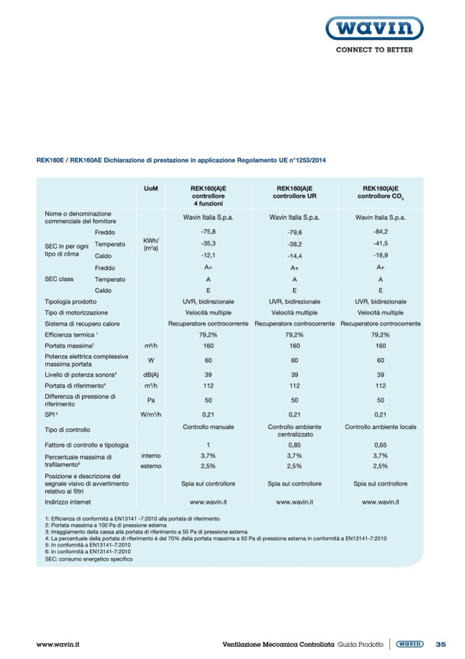 REK160E / REK160AE Dichiarazione di prestazione in applicazione Regolamento UE n°1253/2014