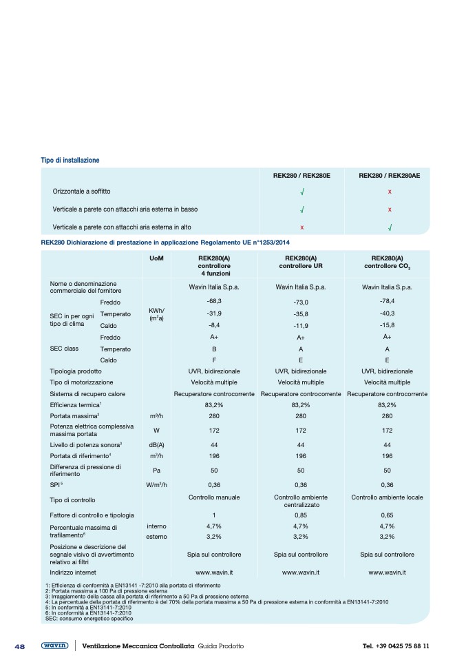 REK280 Dichiarazione di prestazione in applicazione Regolamento UE n°1253/2014