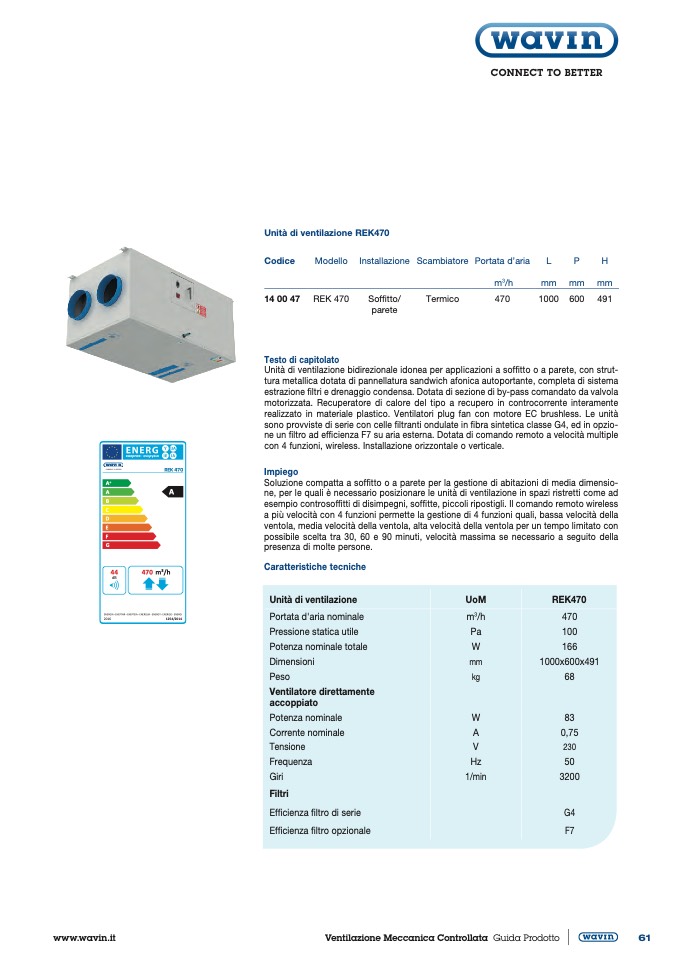 ne un filtro ad efficienza F7 su aria esterna. Dotata di comando remoto a velocità multiple