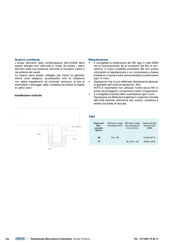 • È consigliata la sostituzione dei filtri ogni 3 mesi (2000