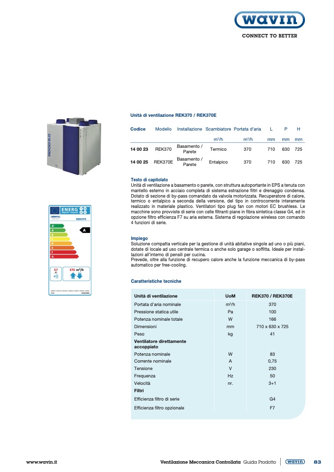 opzione filtro efficienza F7 su aria esterna. Sistema di regolazione wireless con comando