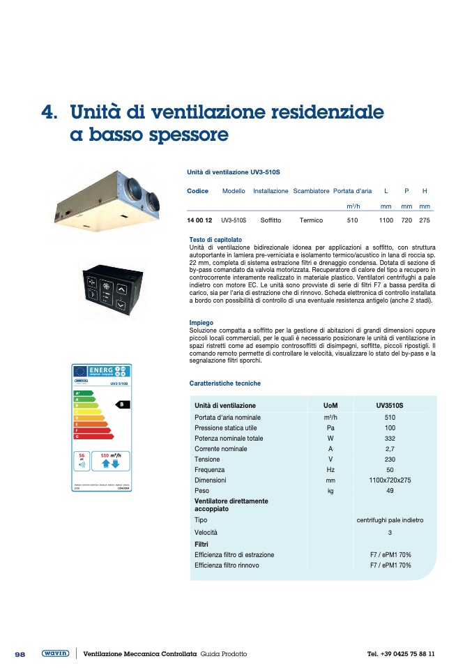 indietro con motore EC. Le unità sono provviste di serie di filtri F7 a bassa perdita di