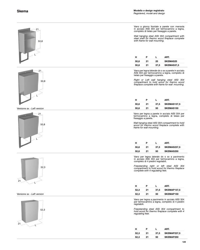 Vano per legna a pavimento in acciaio AISI 304