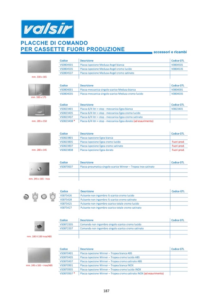 Placca 6/4 litri + stop - meccanica Egea dorato (ad esaurimento)