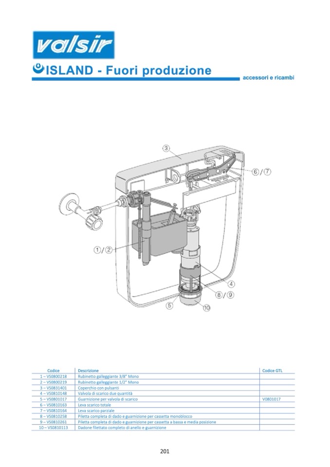 Piletta completa di dado e guarnizione per cassetta a bassa e media posizione