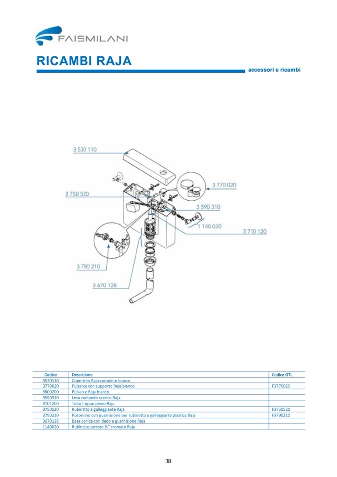 Pistoncino con guarnizione per rubinetto a galleggiante plastica Raja