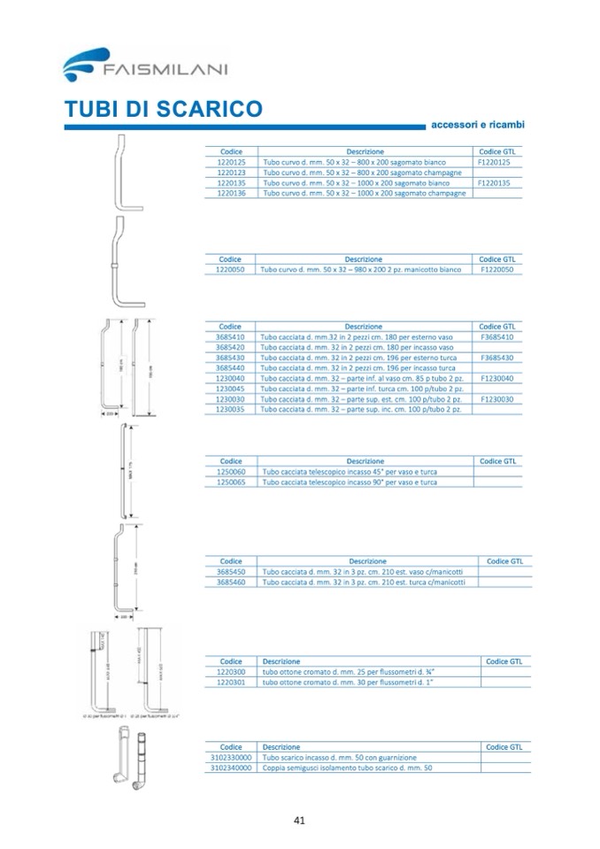 Tubo cacciata d. mm. 32 – parte inf. turca cm. 100 p/tubo 2 pz.