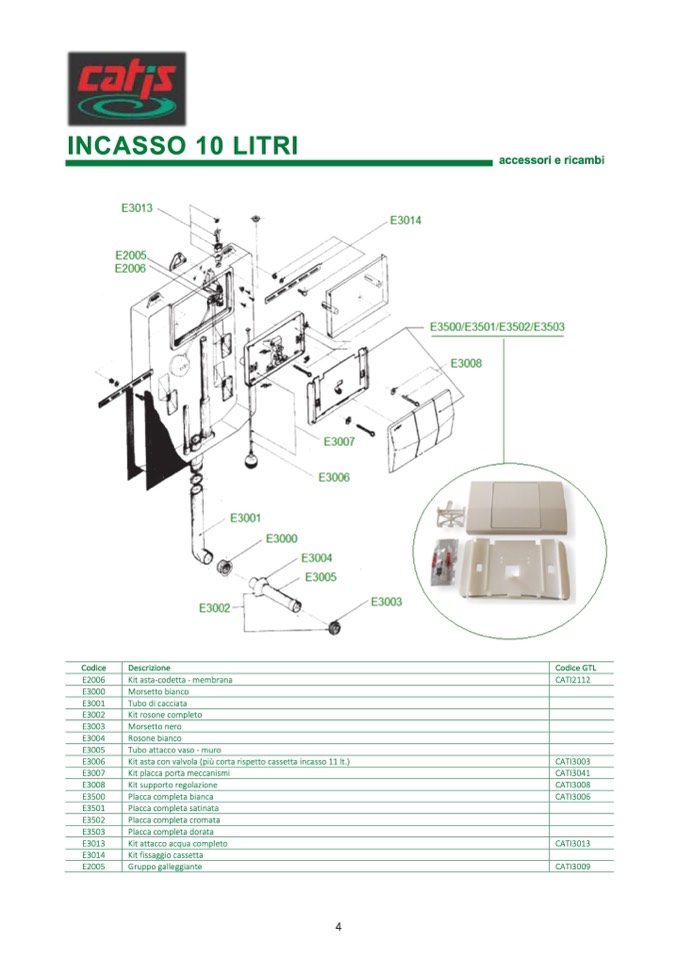 Kit asta con valvola (più corta rispetto cassetta incasso 11 lt.)