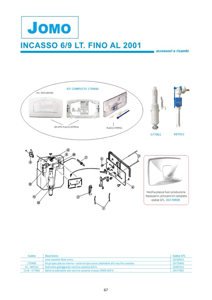 Batteria adattabile alla vecchia cassetta incasso JOMO 6/9 lt.