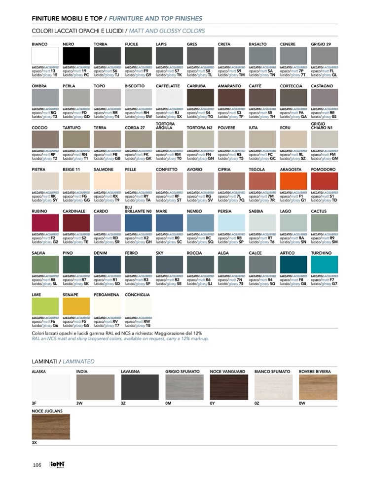 RAL an NCS matt and shiny lacquered colors, available on request, carry a 12% mark-up.