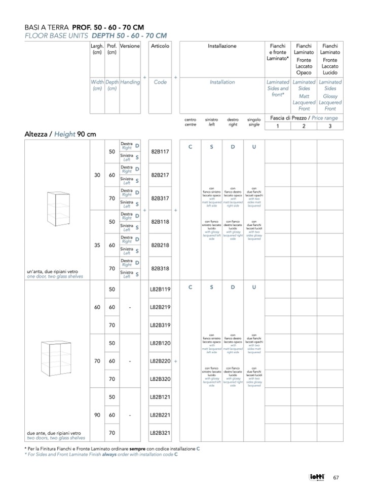 * Per la Finitura Fianchi e Fronte Laminato ordinare sempre con codice installazione C
